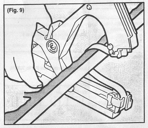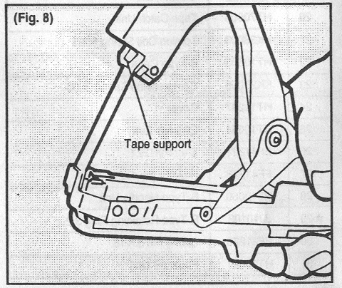 2. Release the handle as explained above. The tape will then be pulled out. (Fig. 8)